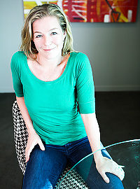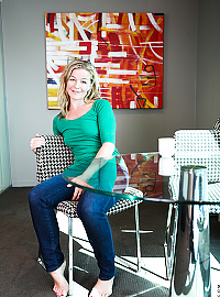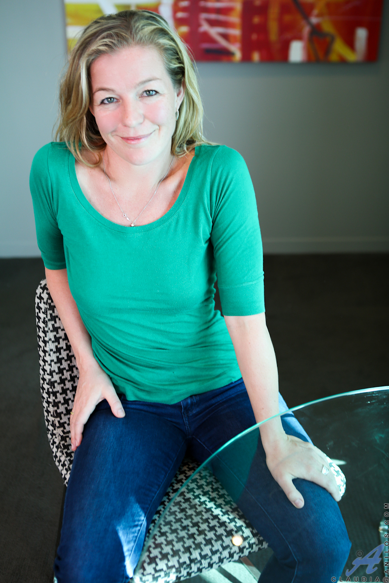 Blonde-haired mommy Lili Peterson plays with her wet coochie on the couch