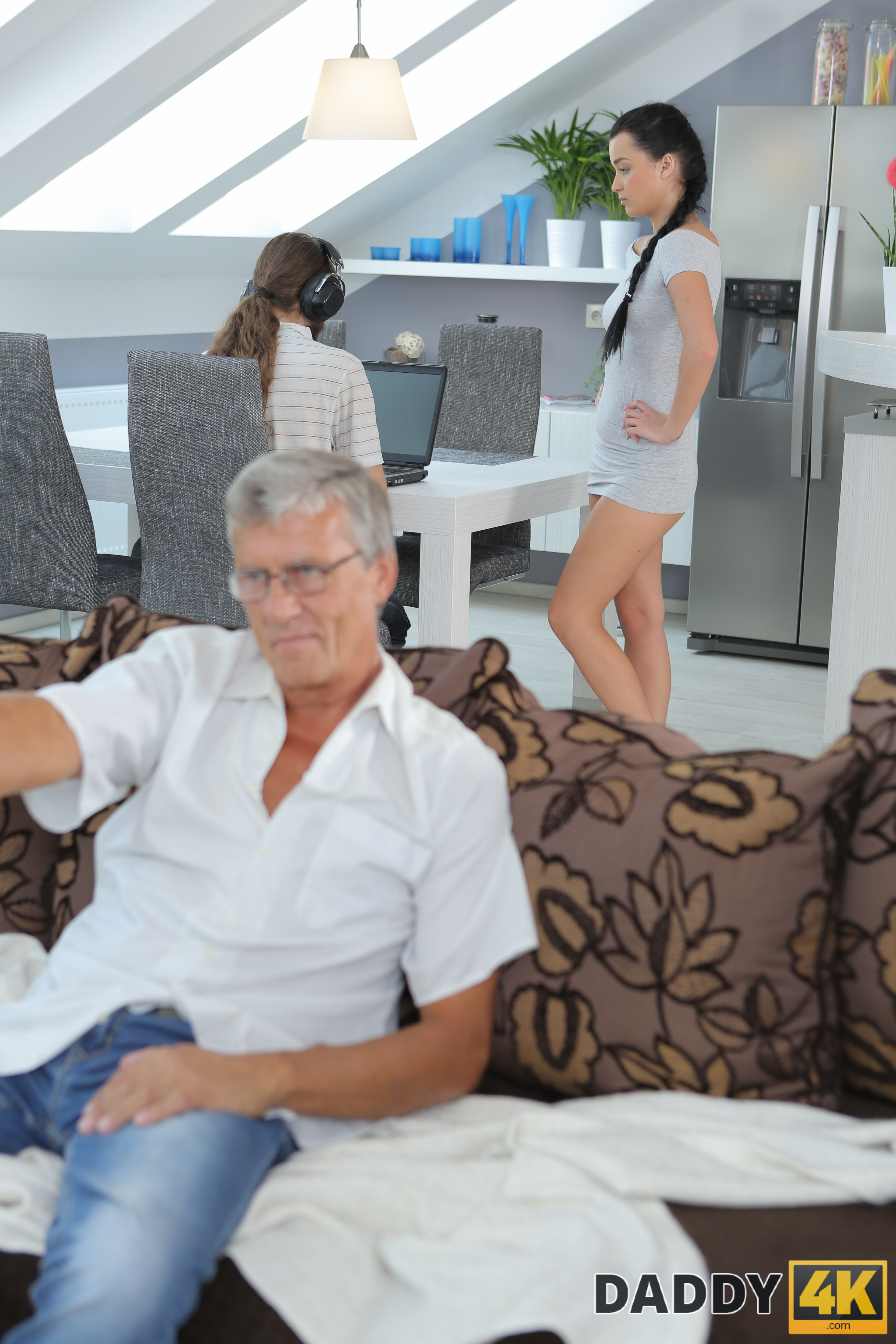Photos description: Young Erica was bored. It was such a sunny weather outside, and she was dreaming about a nice walk with her boyfriend. But he was stuck with his PC like usual. Sometimes, Erica thought that he loves this machine more than her, since they didn’t have sex for a month. Looks like today nothing is going to change. Her boyfriend even pushed her away, when she sat on his table. Erica was disappointed and upset. She looked around and decided to join her boyfriend's father, who was watching TV. There was nothing else to do. She was just sitting on that sofa close to her boyfriend's daddy. Unsatisfied and unhappy. Her sexual power had to find a way out so Erica started to play with herself and the older gentleman noticed that. He was much older than Erica and his son was her boyfriend, but right here and right now they were together full of lust... Her boyfriend's dad fucked her hard on that sofa behind his son's back until she comes... How could they ever know that their secret will be disclosed so fast?
