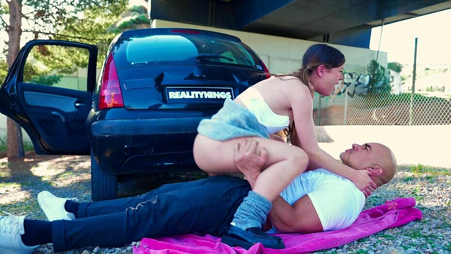 Movie description: Cute teen Agatha Shay needs some assistance! Her car broke down by the side of the road, and luckily Christian Clay pulls up and offers to help. He takes a look under Agatha's hood, then calls roadside assistance. Despite a language barrier, Agatha wants to communicate her gratitude, so she thanks Christian with the universal tongue of a blowjob. He licks her pussy, then fucks her against the side of his car. Agatha rides him in the backseat and on the ground.