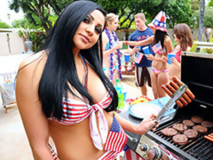 Movie description: Audrey and friends are celebrating the 4th of July when Danny crashes with a Brit flag in his undies. Audrey's friends insult him but Audrey's attention is on Danny's bulge.