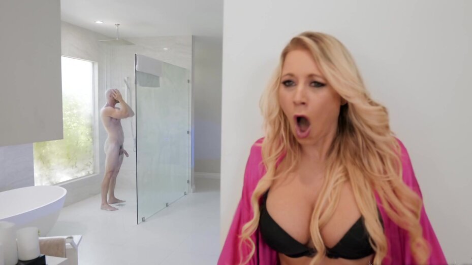 Movie description: A MILF's work is never done, but sometimes she needs some fun! Blonde cougar Katie Morgan is in her pink, silk robe all ready to do laundry, but when she catches sight of studly Johnny Sins and his huge dick in the shower, she abandons her chores for cock. Katie peeks at Johnny as he dries off, then makes her move, crawling over to him and giving him a mindblowing blowjob with all the benefit of her considerable experience. Johnny is immediately hooked by the MILF's charms, licking her pussy and giving her every inch of his thick meat. Katie wants that cum all over her face, and that's just what she gets!