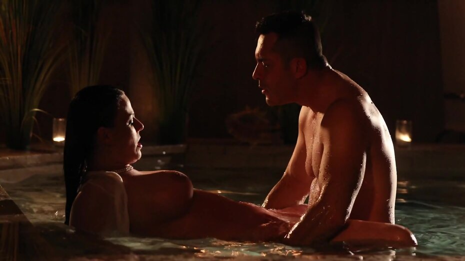 Black-haired bitch Jacky Lawless rides lucky guy in bed