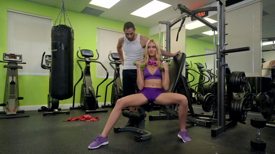 Movie description: Personal trainer Damon Dice is used to hitting on hotties at the gym, but he's not used to the response he gets from badass blonde Mazzy Grace! Mazzy has less than no desire to chat with him or listen to his form tips, and when Damon puts his hands on her, Mazzy puts him in his place, pulling him down into a triangle choke and then sitting on his face! Damon can't believe his eyes as Mazzy ties his wrists with a jump rope, then plays with his cock and makes him watch as she rubs her clit. This blonde is definitely the one calling the shots as she rides Damon's cock and tells him to fuck her harder in doggystyle. Mazzy won't let Damon tap out until he cums so hard he can't even stand up!